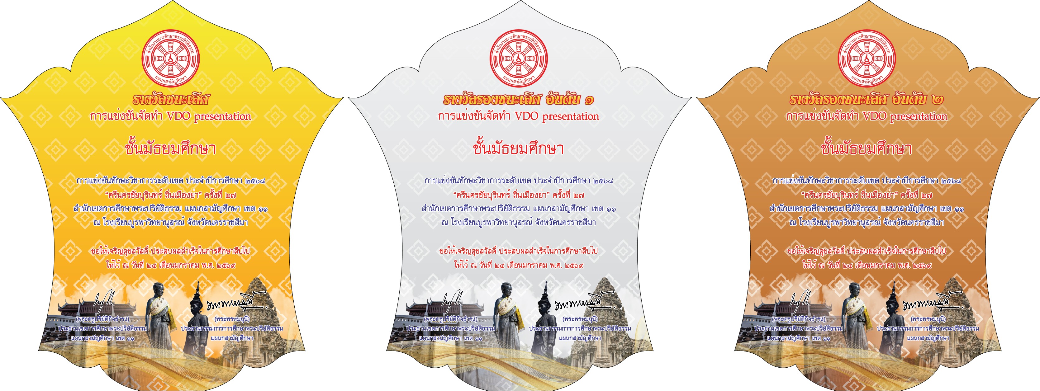 จ่ายครบแล้ว- การแข่งขันบรรยายธรรม ภาคภาษาไทย (ระดับมัธยมศึกษาตอนต้น) (มัธยมต้น) - รองชนะเลิศอันดับ 1 (2 โล่)
