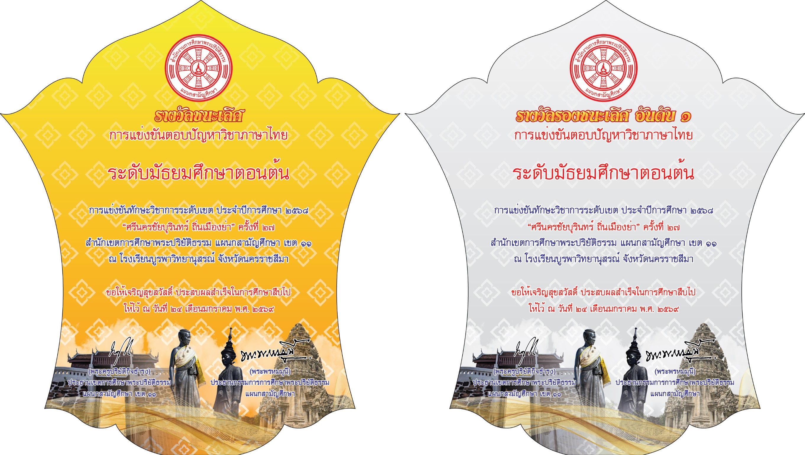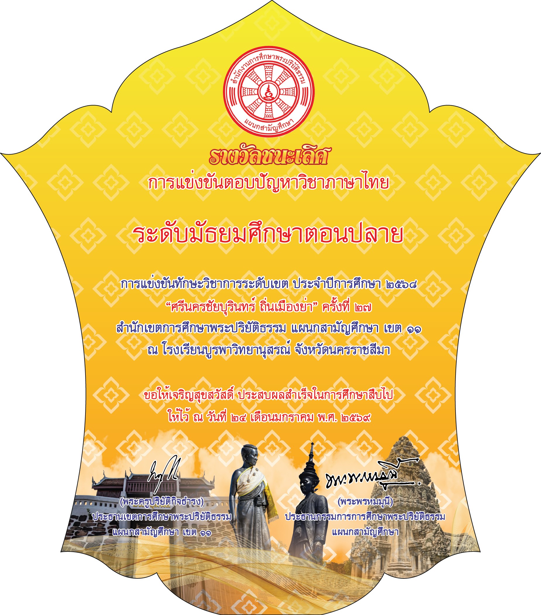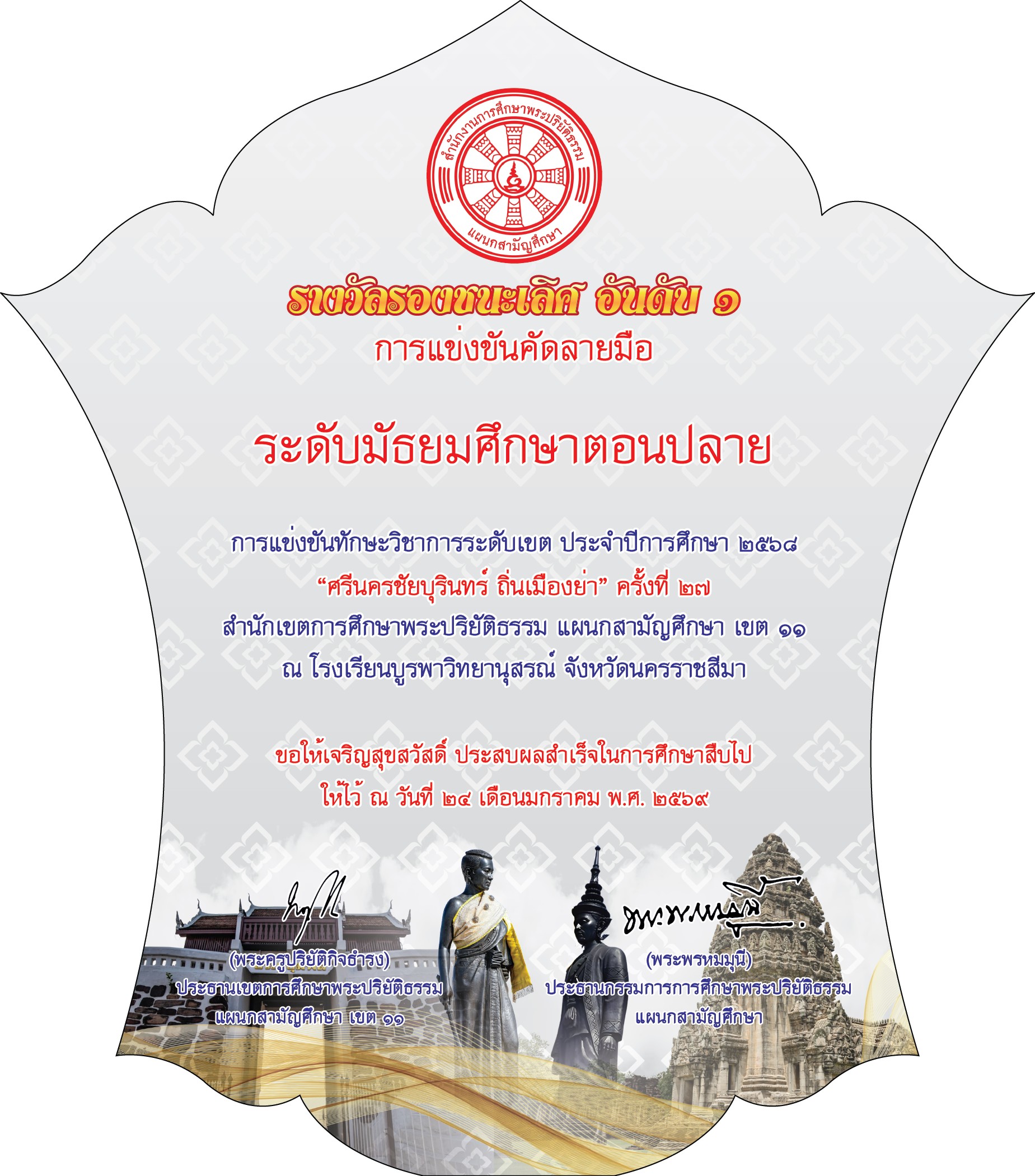 | ปริยัติสามัญนครราชสีมา | รองชนะเลิศอันดับ 1 |